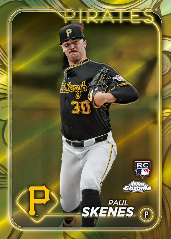 Look for 2024 Topps Chrome Baseball with the highly anticipated Gilded effect!