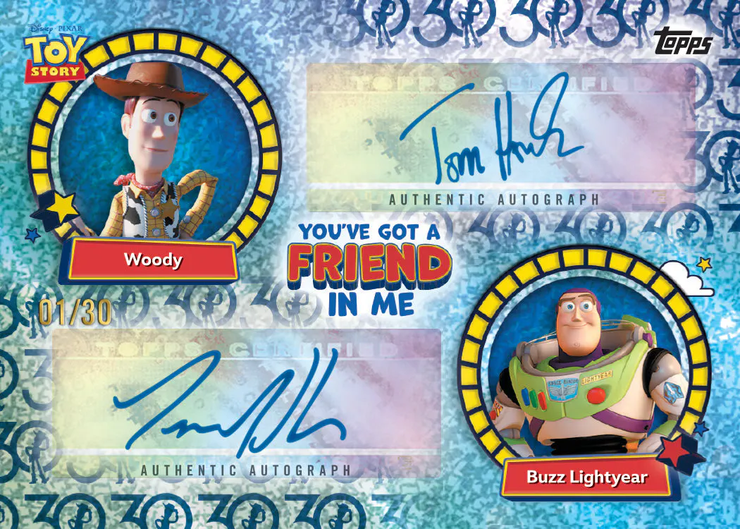 Celebrate three decades of the beloved Toy Story franchise with 2025 Topps 30 Years of Toy Story, a trading card set that captures the heart, humor, and imagination of Woody, Buzz, and all of Andy’s unforgettable toys. Featuring unique inserts, sketch cards from Pixar animators, Base Card variations, Shadowbox cards, autograph cards from Tom Hanks, Tim Allen, and more, this product delivers a collectible experience packed with nostalgia, playful surprises, and the magic of Toy Story storytelling.